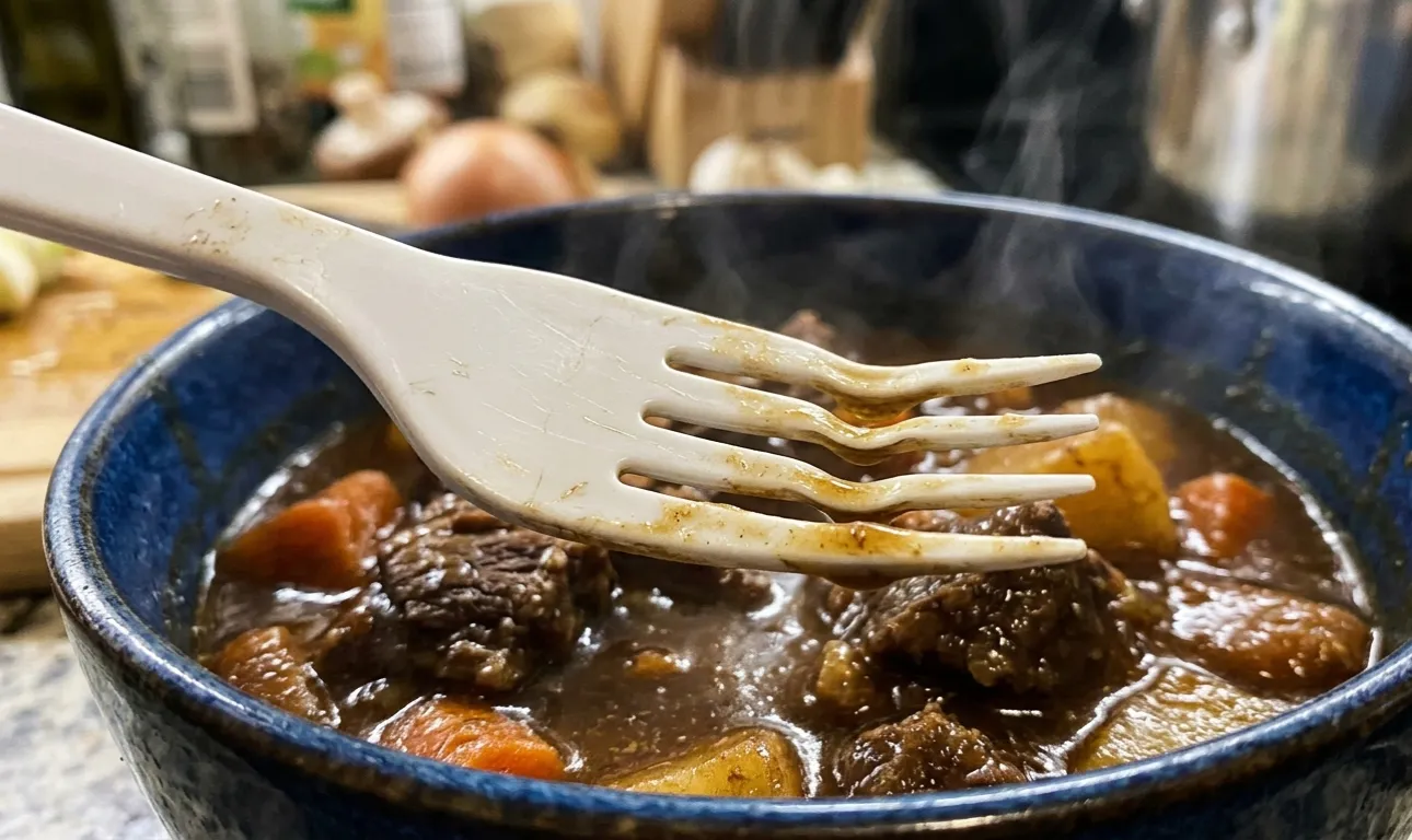 Όταν τοποθετούμε παλιά σκεύη σε ζωμό που βράζει ή σε φρεσκομαγειρεμένα ζυμαρικά, ενεργοποιείται η διαδικασία αποικοδόμησης των υλικών. Στην πράξη, παρατηρείται συχνά θερμική υποβάθμισηόπου η δομή των πολυμερών μεταβάλλεται μη αναστρέψιμα από τη θερμοκρασία.